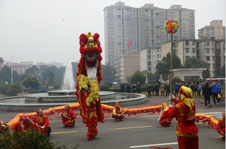 上午808分,舞龍舞獅隊在陣陣鞭炮聲和歡呼聲中上演了精彩的表演。