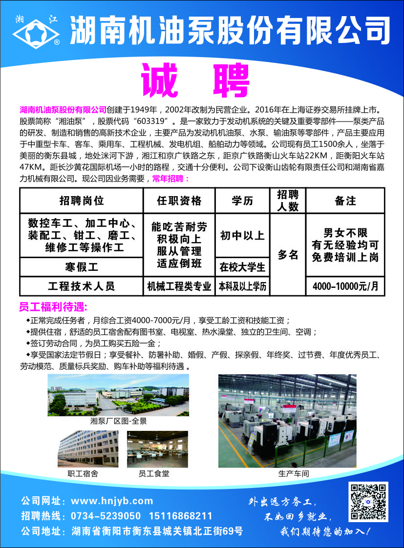 誠聘!歡迎廣大有志之士加入湘油泵大家庭!